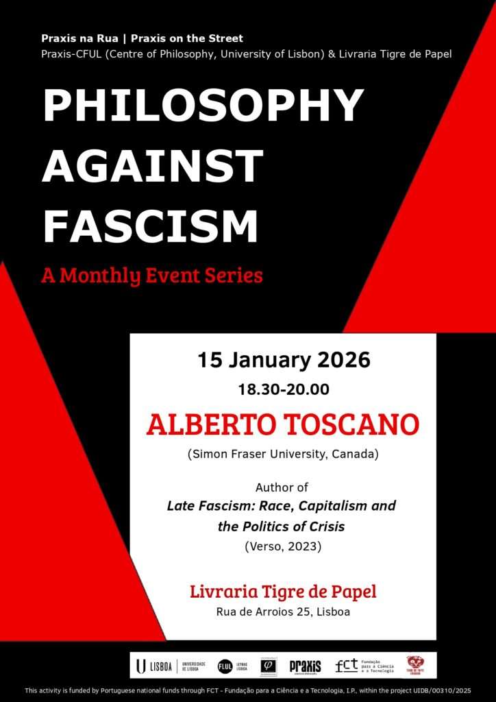 A compreensão e a crítica do surgimento do fascismo exigem uma análise das suas complexas dimensões ideológicas. O Praxis-CFUL e a Livraria Tigre de Papel dão início ao ciclo de debates Filosofia Contra o Fascismo, reunindo filósofos e teóricos para examinar criticamente as formas contemporâneas de fascismo e repensar o antifascismo hoje, a partir do seu cruzamento com as categorias do capitalismo, da raça, do género, da nação, da colonialidade e da democracia.