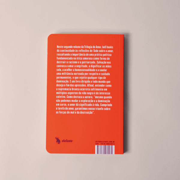Neste segundo volume da Trilogia do Amor, bell hooks dá continuidade às reflexões de Tudo sobre o amor, ressaltando a importância de uma prática política fundamentada na ética amorosa como forma de destruir o racismo e o patriarcado. Salvação nos convoca a amar a negritude, a dignificar as mães solo, a acolher a homossexualidade e a saudar uma militância norteada por respeito e cuidado permanentes, e que rejeite qualquer tipo de dominação. É um livro dirigido a todo mundo que deseja o fim das opressões. Afinal, entender como a supremacia branca acarreta sofrimento em múltiplos aspectos da vida negra é de interesse coletivo. Como destaca a autora, “mesmo quando não podemos mudar a exploração e a dominação em curso, o amor dá significado à vida. Cumprindo a tarefa do amor, garantimos nosso triunfo sobre as forças do mal e da destruição”.